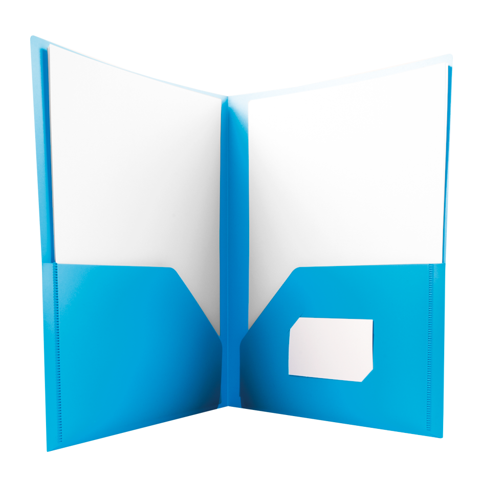 Skoroszyt PP z dwoma kieszeniami i miejscem na wizytówkę. Wymiary: 310x140x3 mm, grubość tworzywa: 0,40 mm. Opakowanie: folia 1 sztuka.
