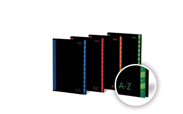 Skorowidz teleadresowy w twardej, laminowanej oprawie. Papier 60g/m2. Format A5, 96 kartek w kratkę.