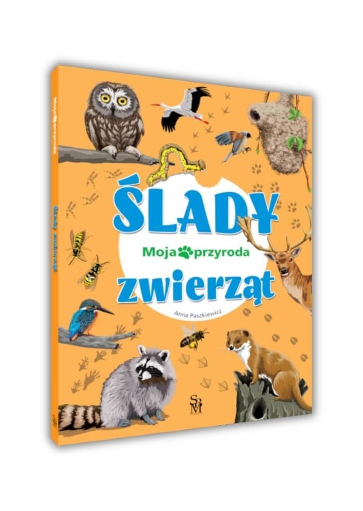 Moja przyroda. Ślady zwierząt to książka w której znajdziesz wierszyki i opisy różnych śladów pozostawianych przez zwierzęta. Głównie są to tropy, czyli ślady łap widoczne na śniegu, piasku czy innym podłożu, ale także złamane gałązki, resztki po posiłku, wydeptana trawa, ogryziona kora czy legowiska. Piękne ilustracje przybliżą ci fascynujący świat przyrody.