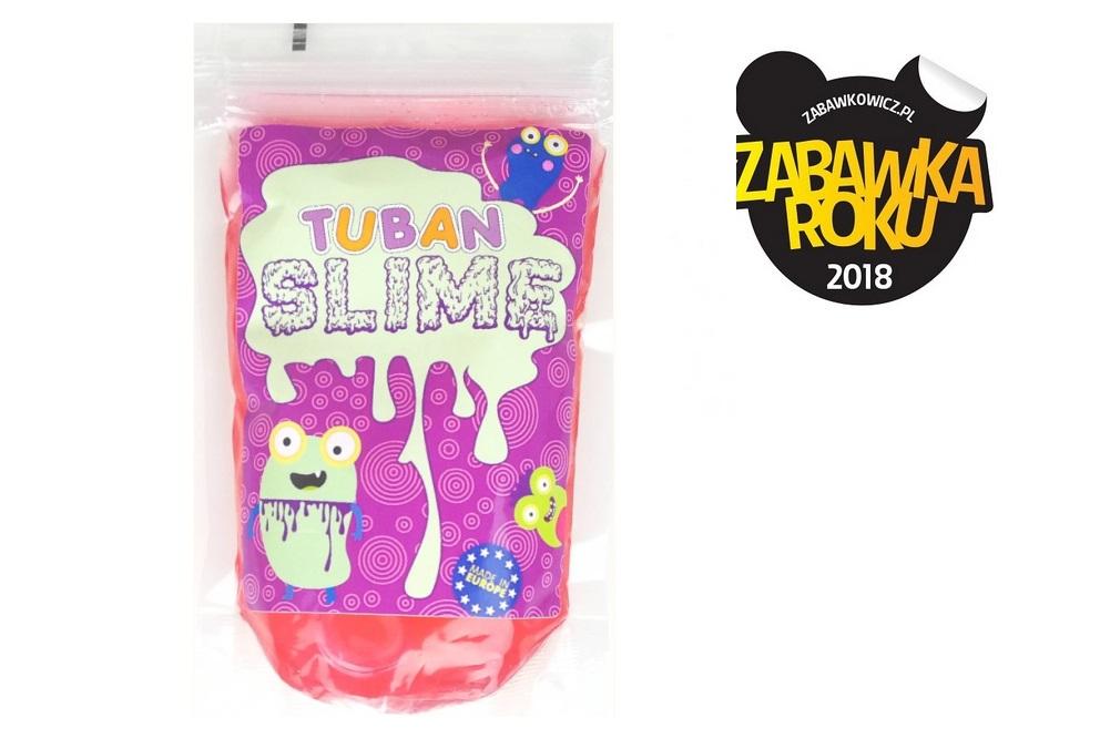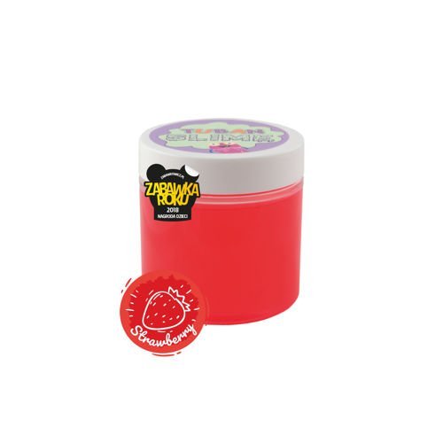 TUBAN Slime o zapachu truskawki. Fantastycznie się ciągnie i ugniata. Można z jego pomocą robić slimowe bańki.