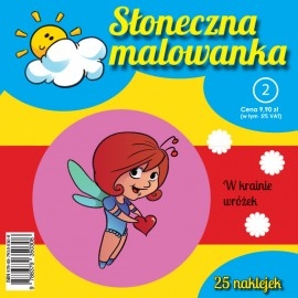 Kolorowanka dla dzieci. Na każdej stronie umieszczony jest jeden duży obrazek - wróżka - do pokolorowania oraz zestaw naklejek przyporządkowany do każdego obrazka. Dzieci mogą pokolorować korzystając z podpowiedzi z naklejki lub według własnego pomysłu.