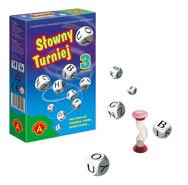 Gracze rzucają kolejno 10 kostek z literami, a następnie wszyscy jednocześnie, starają się ułożyć z nich jak najszybciej słowo lub kilka słów, lub też najdłuższe słowo - w zależności od wariantu gry. Słowny Turniej to świetna zabawa i dobry trening na spostrzegawczość, kojarzenie czy znajomość ortografii.