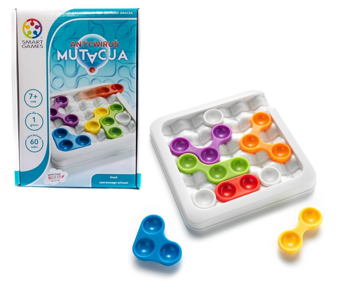 W grze Antywirus Mutacja gracze przesuwają kolorowe elementy w taki sposób, aby utorować czerwonemu wirusowi drogę do wyjścia i usunąć go z planszy. To kolejna generacja oryginalnego Antywirusa, oferująca zupełnie nowe doświadczenia. Dzięki 60 ciekawym zadaniom i przenośnemu opakowaniu świetnie sprawdzi się jako gra podróżna.