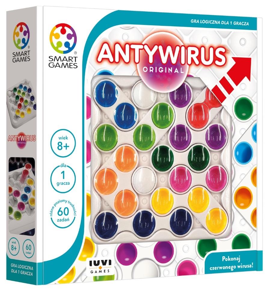 ""Antywirus"" to atrakcyjnie wydana gra logiczna. Celem gracza jest usunięcie czerwonego wirusa przez szczelinę w rogu planszy. 60 zadań o narastającym poziomie trudności, rozwinie u dziecka zdolność nieszablonowego myślenia i koncentrację. Czy zdołasz rozwiązać każde z wyzwań i pokonać wirusa?