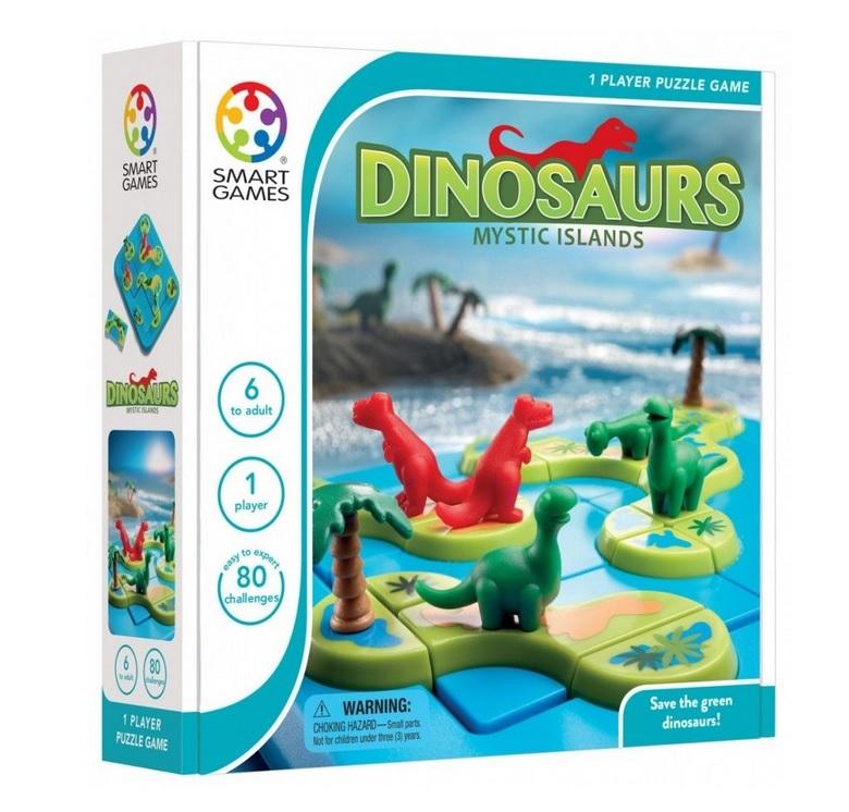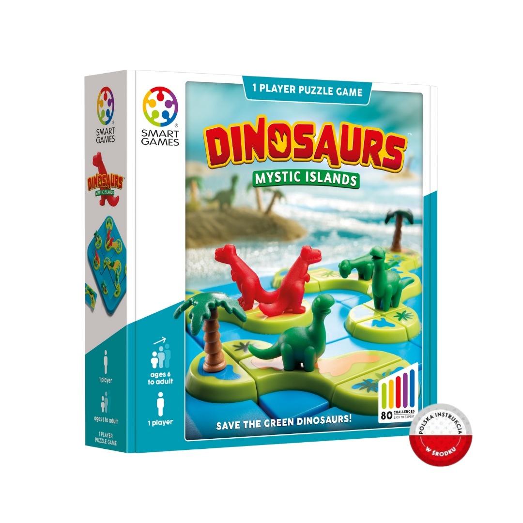 ,,Dinosaurs Mystic Island"" to magnetyczna gra logiczna, w której gracz stara się umieścić roślinożerne i mięsożerne dinozaury na oddzielnych wyspach.