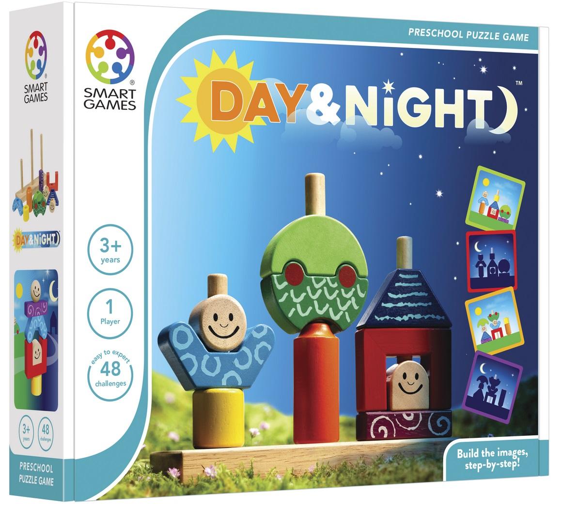 Witaj w świecie gry ""Day&Night"" - logicznej układanki dla najmłodszych. Dziecko rozwiązując kolejne zadania ""dzienne"", polegające na odpowiednim układaniu klocków, ćwiczy koncentrację i zdolności manualne. Dla małych graczy, szukających większych wyzwań przygotowano zadania ""noce"", które dodatkowo trenują wyobraźnię i zdolności analityczne!