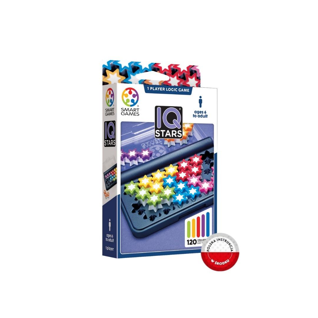 IQ Stars to kompaktowa gra logiczna. Gracz korzystając ze wskazówek, musi umieścić na planszy 7 elementów o różnych kształtach i kolorach. Dzięki narastającemu poziomowi trudności, każda ze 120 zagadek pozwoli rozwijać koncentrację i nieszablonowe myślenie.