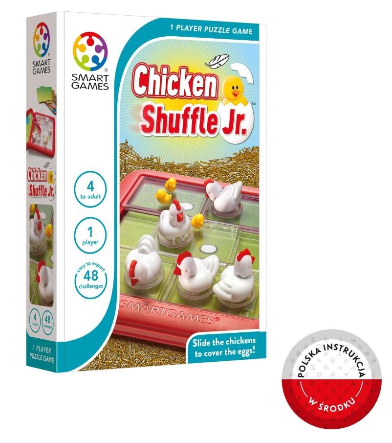 W Chicken Shuffle Jr.,zabawnej grze logicznej, czeka na Was 48 zadań o narastającym poziomie trudności. Kolorowe wykonanie i proste zasady sprawią, że dziecko niepostrzeżenie podczas naturalnej zabawy rozwinie potrzebne mu w życiu umiejętności takie jak koncentracja czy zdolność elastycznego podchodzenia do problemu.