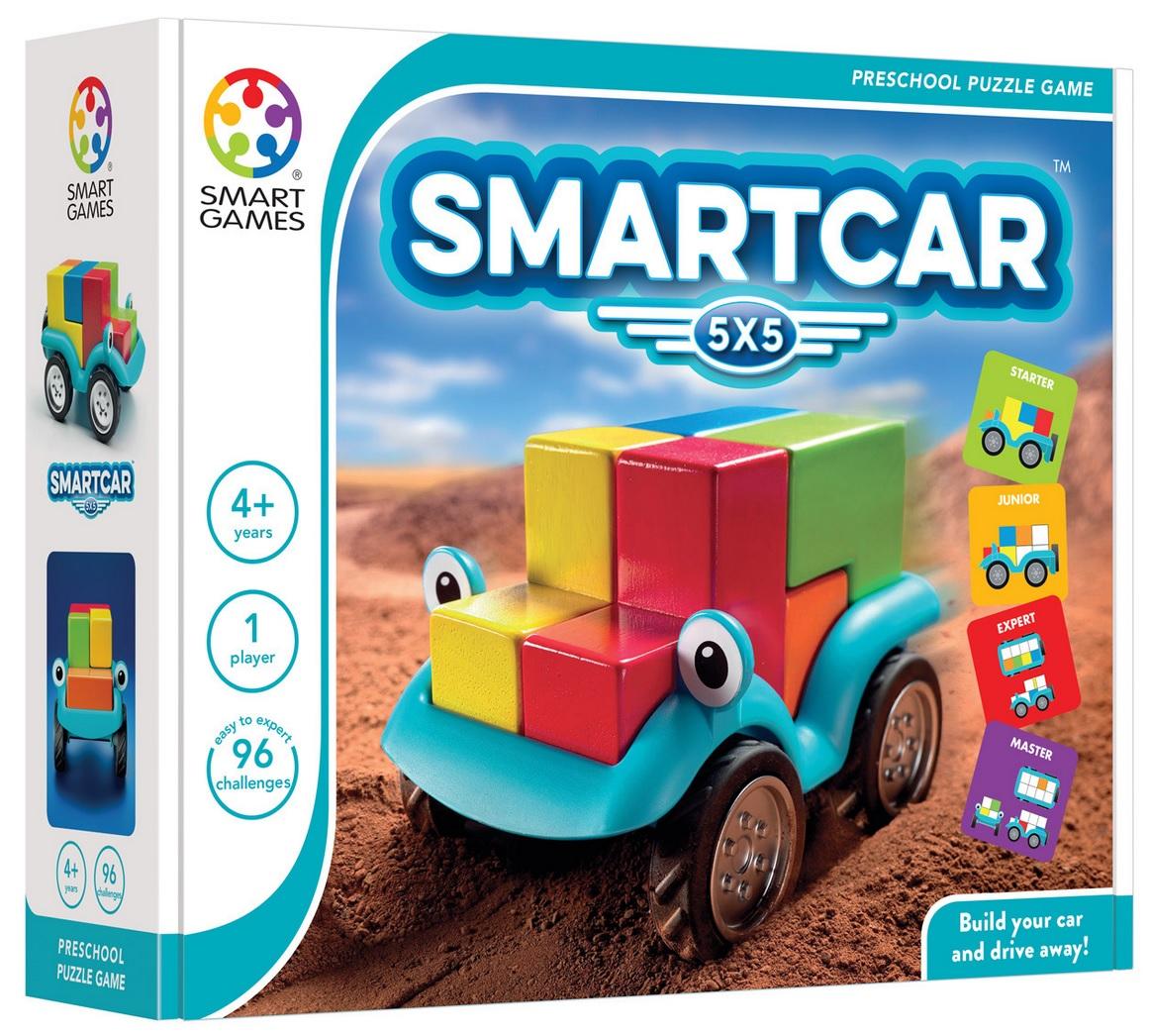 Zapraszamy do ""Mądrego Samochodzika 5x5"" - gry logicznej, w której mali gracze spróbują zmierzyć się z 96 zadaniami o narastającym poziomie trudności. Dziecko korzystając z podpowiedzi, będzie próbować umieścić 5 klocków na pace samochodu w odpowiedni sposób. Proste zasady i solidne wykonanie sprawią, że pociecha w naturalny sposób, poprzez zabawę, ćwiczy zdolności manualne. Aby ułatwić rozpoczęcie gry, zadania zostały podzielone na dwie książeczki: osobno dla starszych i młodszych adeptów budowania.