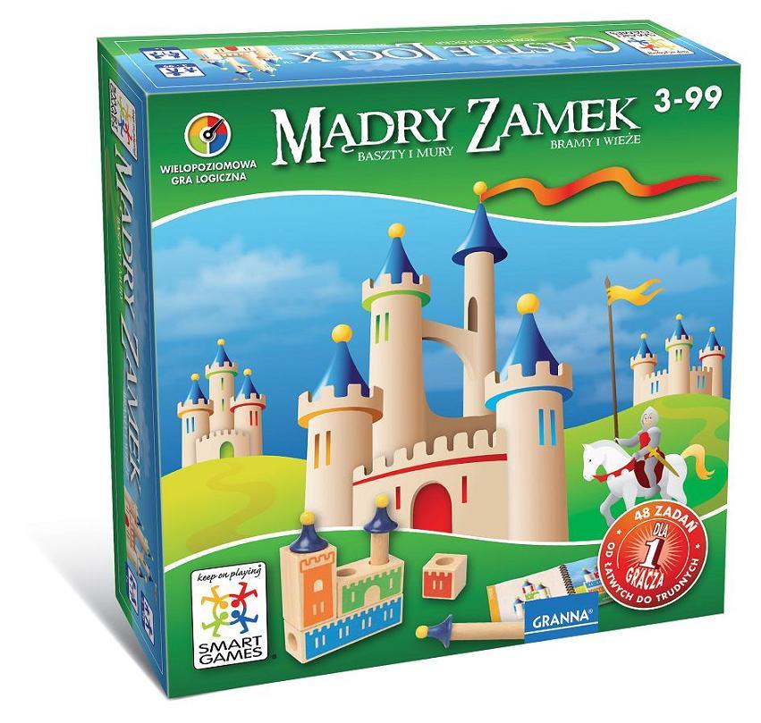 z pięknie wykonanych drewnianych elementów. Twoje zadanie polega na takim ułożeniu drewnianych klocków, aby powstał jeden z zamków umieszczonych w książeczce. Niektóre zagadki są tak proste, że poradzi sobie z nimi nawet niedoświadczony budowniczy, ale są też takie, które będą nie lada wyzwaniem nawet dla wytrawnego architekta!