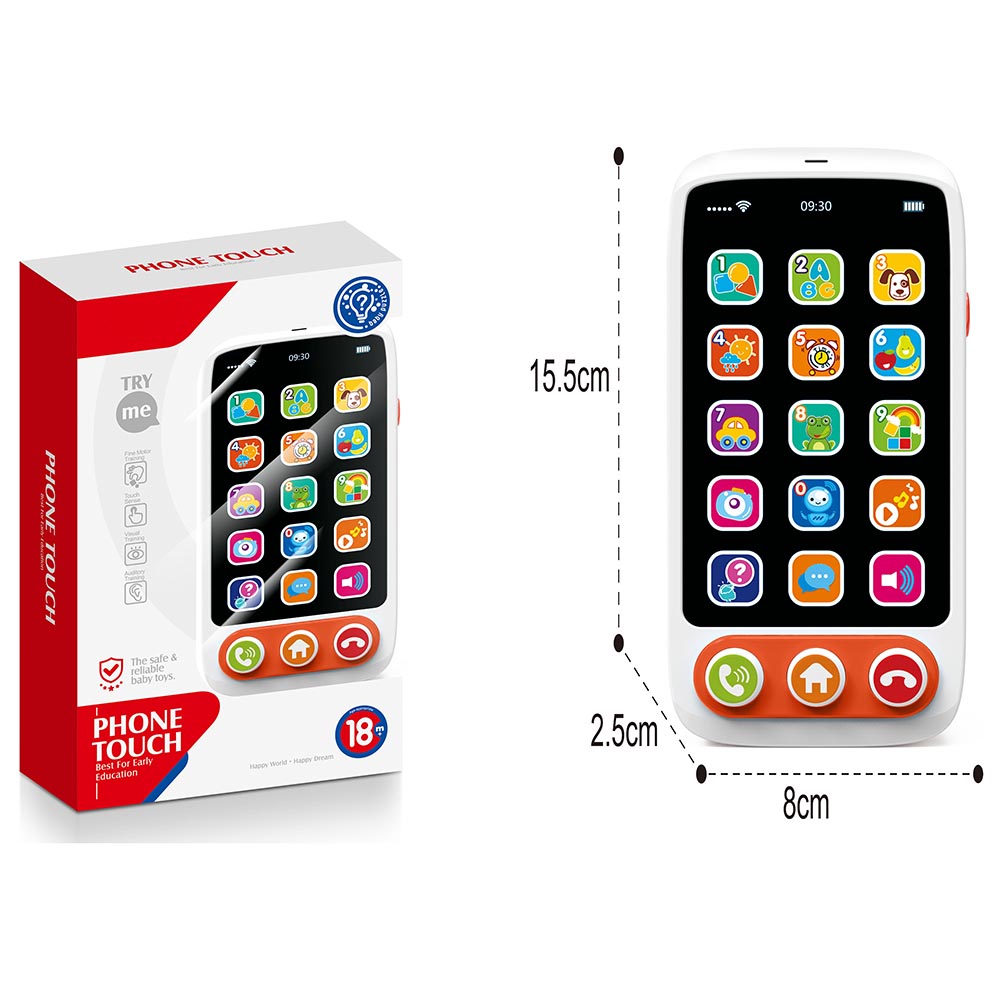 Samrtfon dla malucha z dotykowym ekranem 15 podświetlanych aplikacji, regulacja głośności zasilanie: 3xAAA (brak w zestawie) telefon 8x2.5x15.5 cm