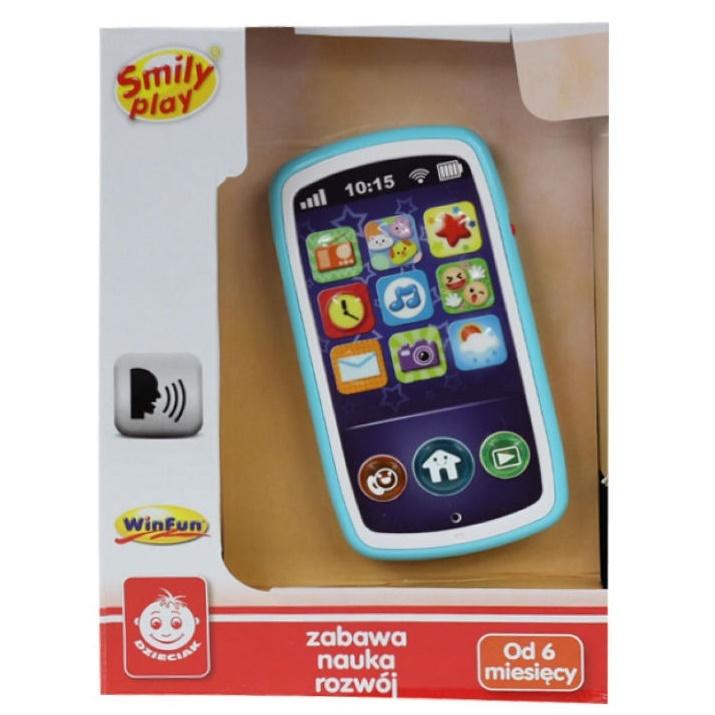 Telefonik posiada dotykowy ekranik reagujący na dotyk małych paluszków. Jak w prawdziwym smarcie na wyświetlaczu znajdują się ikonki-przyciski przedstawiające różne symbole. Każda interakcja dziecka wywołuje reakcję urządzenia, odpowiada ono: