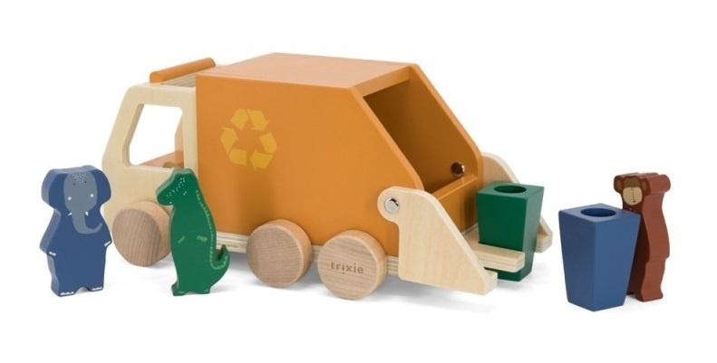 Gotowi do zbierania śmieci i recyklingu! Nasi zwierzęcy przyjaciele chętnie pomagają w segregacji odpadów, dbając o przyszłość naszej planety. Śmieciarka jest wyposażona w 3 zwierzątka oraz 2 pojemniki do zbierania i opróżniania z tyłu pojazdu. To wspaniały sposób, aby dzieci nauczyły się, jak ważny jest recykling! Skład: MDF FSC(R) - drewno bukowe FSC(R) - sklejka FSC(R) Rekomendowany wiek: 18m+