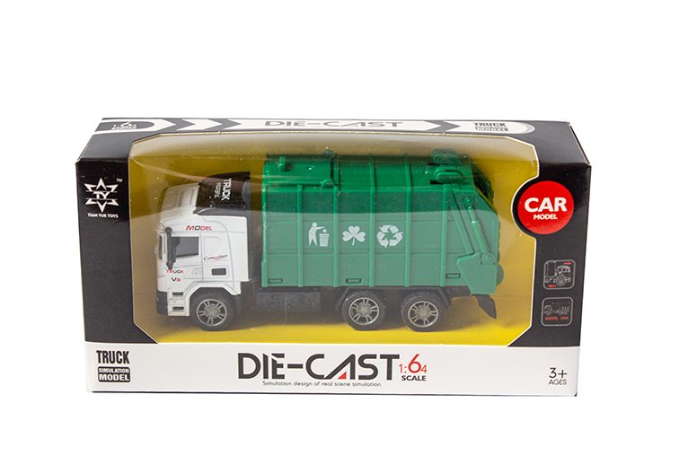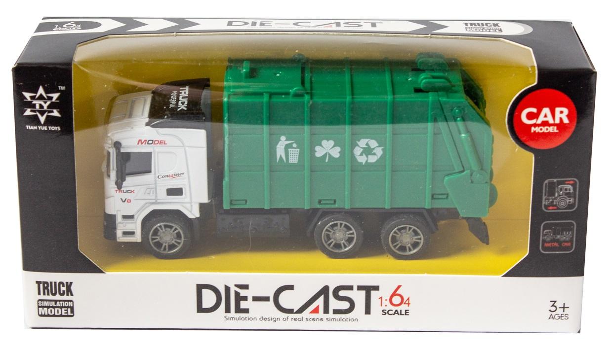 Zielono-biała śmieciarka w skali 1:64 to fascynująca zabawka dla maluchów, które kochają pojazdy specjalne.