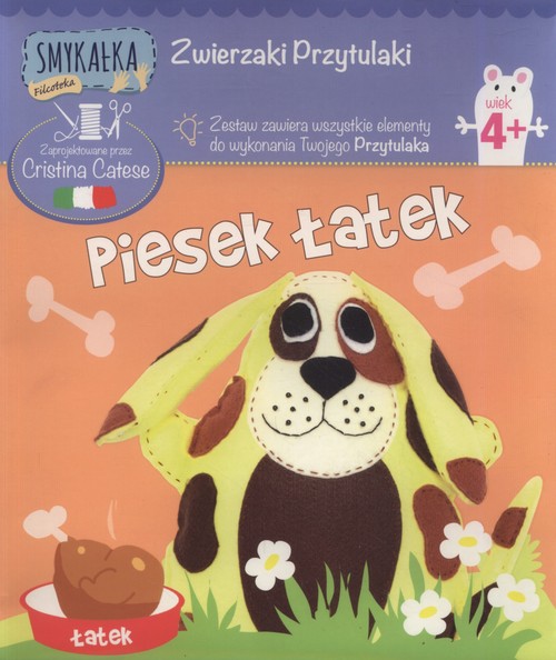 Ogon, radość, kość, zabawa. Kopię doły, młynka kręcę i powstaje wielka wrzawa. Łapy mam cztery, chodzę na poduszkach. Kto pokaże ile to jest na paluszkach? Jestem Piesek Łatek i uwielbiam wspólne zabawy z moimi przyjaciółmi: Kotkiem Psotkiem, Misiem Miodkiem, Królikiem Ząbkiem i Chomikiem Chrupkiem. Moją ulubioną zabawą jest zakopywanie kości w różnych miejscach. Niestety zapomniałem, gdzie one są Czy pomożesz mi je odszukać?"" Zwierzaki przytulaki to seria zabawek składająca się z najbardziej rozpoznawanych i ulubionych przez dzieci zwierząt do samodzielnego zszycia. Zabawka jest wykonana z bardzo miękkiego i przyjemnego w dotyku filcu. W opakowaniu znajduje się dodatkowo Mini Album z kolekcją zwierzaków i naklejką zakupionego. Wszystkie elementy do samodzielnego przygotowania produktu znajdują się w zestawie: elementy filcowe z otworami ułatwiającymi szycie, elementy filcu samoprzylepnego, wypełnienie, elementy dekoracyjne, plastikowa igła, zestaw zawiera czytelną i szczegółową instrukcję, ze wskazówkami projektantki, pokazującą wykonanie zabawki krok po kroku.