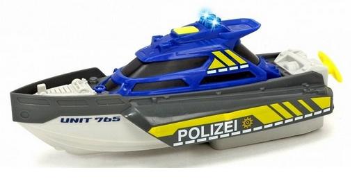 Policyjna łódź Służb Specjalnych wyposażona w światło i dźwięk, ze sznurkiem do napędzania, 1:24, 24cm. W zestawie baterie 3x1,5V LR44.