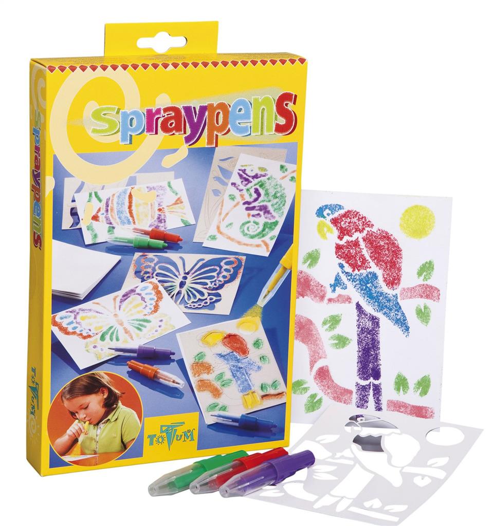 Zawiera: 6 dmuchanych flamastrów, 4 szablony, arkusze białego papieru, instrukcję.