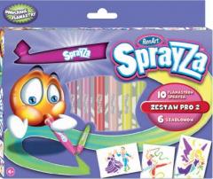 Zabawa z flamastrami Sprayza to niekończące się pomysły. Uruchom swoją wyobraźnię i twórz niepowtarzalne obrazy. Umieść flamaster w tubie i zacznij w nią dmuchać aby stworzyć kolorową mgiełkę. Zestaw zawiera: 10 flamastrów Sprayza, tubę do dmuchania, 6 szablonów A5, instrukcję.