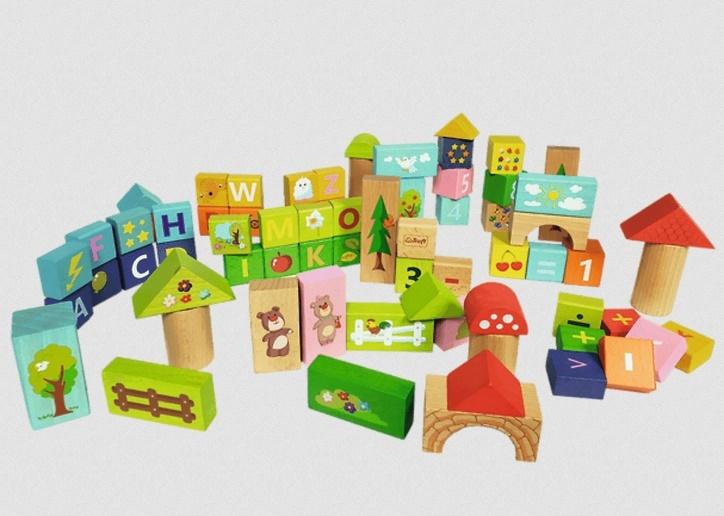W zestawie znajdują się m. in. dwustronne klocki – z jednej strony znajduje się literka lub cyferka, a z drugiej korespondujący z nią rysunek. Wszystkie materiały wykorzystane do stworzenia zabawki posiadają atesty, a także zostały pomalowane nietoksycznymi farbami.