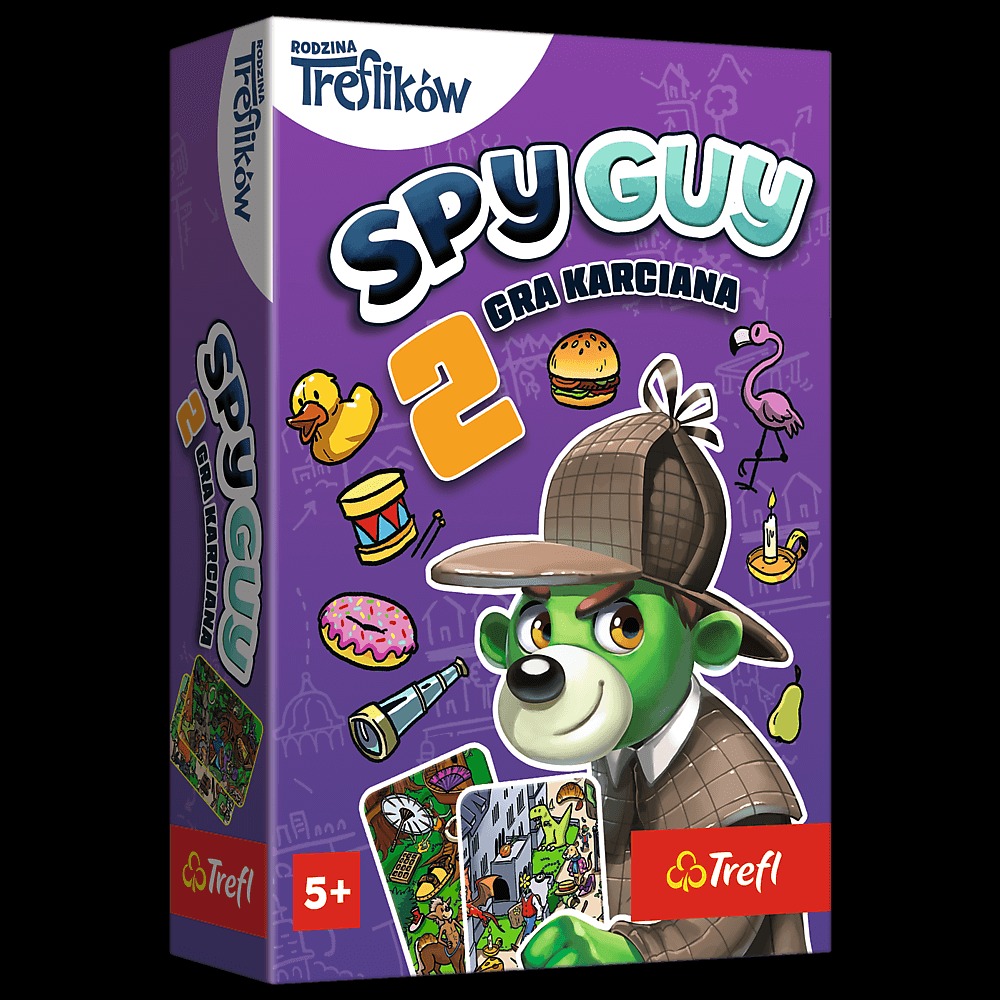 Gra karciana Spy Guy 2 - obserwacycjna gra dla całej rodziny w odsłonie kieszonkowej. Druga część gry karcianej Spy Guy to zestaw 56 nowych kart, które mogą stanowić samodzielną grę lub zostać połączone z pierwszą częścią, oferując jeszcze więcej emocjonującej rozgrywki! Doktor Moritz po raz kolejny próbuje uciec! Wciel się postać superdetektywa Spy Guy'a i złap złoczyńcę, zanim urwie się po nim trop. Sprawdź swoją spostrzegawczość i szukaj poszlak, które łączą ze sobą dwie karty. Im więcej serii poszlak odszukasz, tym większa szansa, że dogonisz uciekiniera.