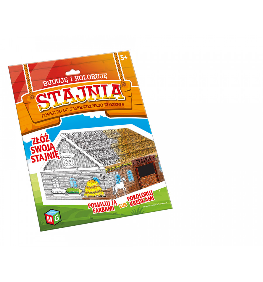 Buduję i koloruję Stajnia to fantastyczna zabawa dla młodych artystów. Stajnia 3D do samodzielnego złożenia, rozwija kreatywność. Stajnia po złożeniu może zostać pomalowana kredkami lub farbami. Zestaw nie zawiera farb oraz kredek.