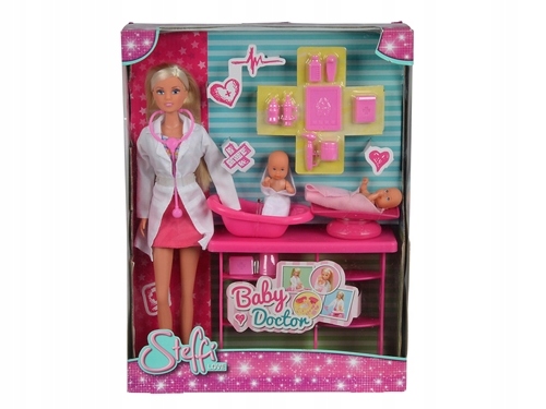 Lalka Steffi lekarz z wieloma akcesoriami, z niemowlakami.