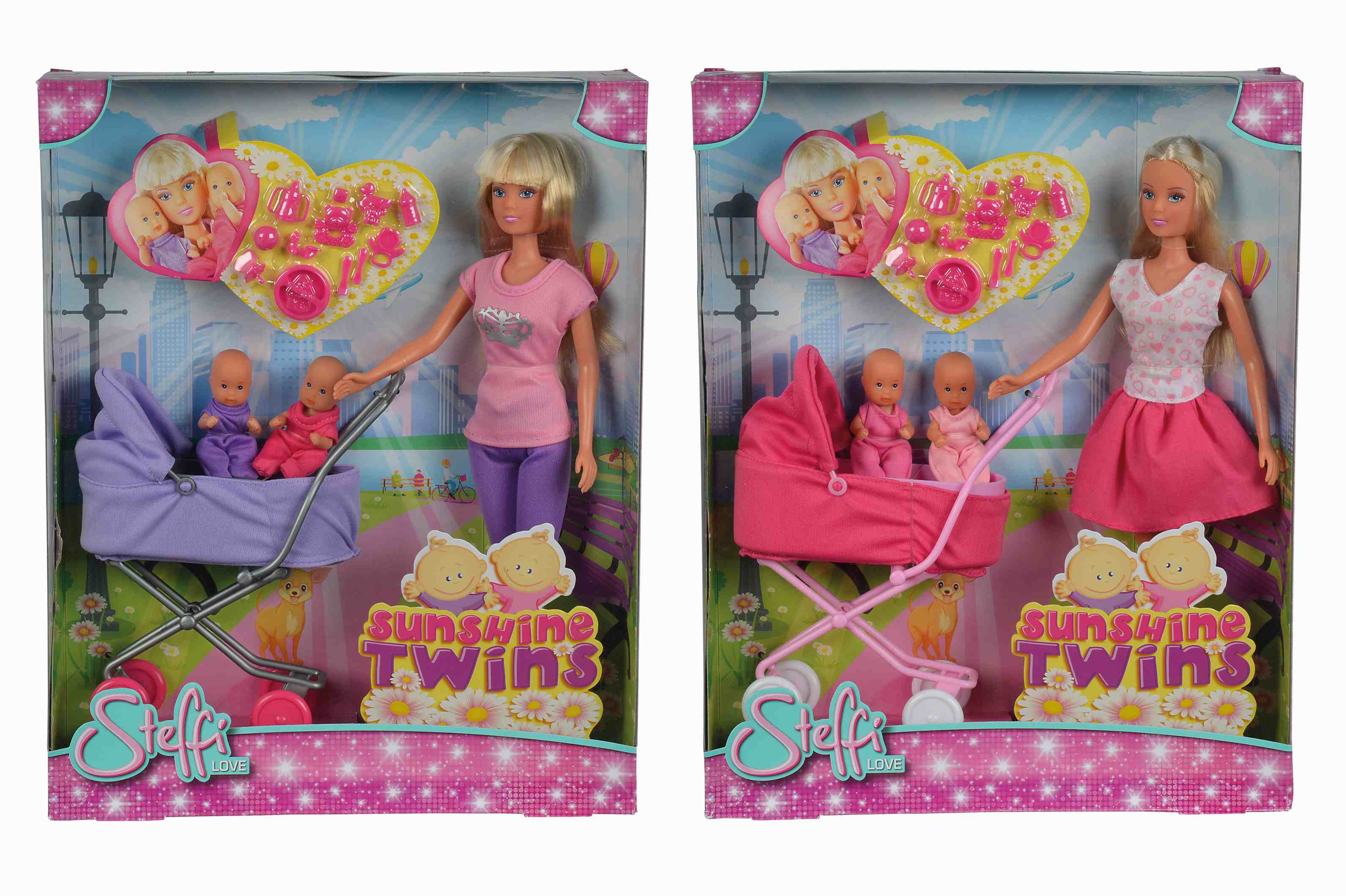 W zestawie lalka Steffi, dwa bobasy, wózek, nosidełko i zestaw akcesoriów do opieki nad bobasami. UWAGA! Towar wybierany losowo.