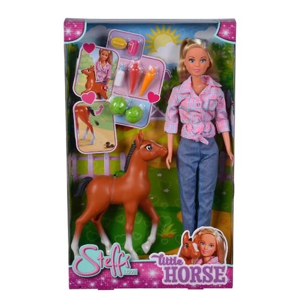 SL Steffi z kucykiem robiącym kupkę Lalka Steffi z uroczym kucykiem, który rozbawi zabawną funkcja, po przesunięciu ogona w bok kucyk robi kupkę, akcesoria dla pielęgnacji kucyka, wysokość lalki: 29 cm, 3l+
