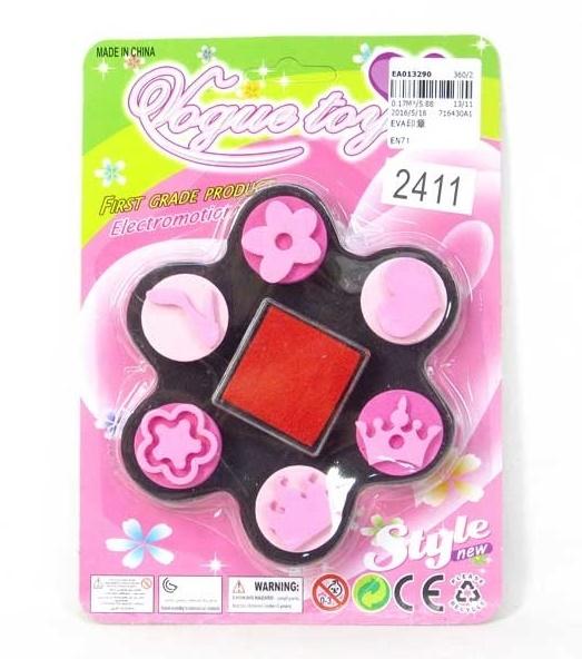 Zestaw stempelków z motywami dla dziewczynek - 6 sztuk z poduszeczką z tuszem.