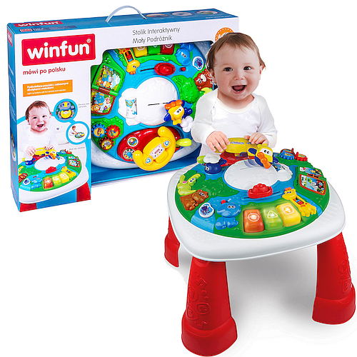 Interaktywny Stolik zachęci do stawiania pierwszych kroków i pomoże rozwinąć umiejętności manualne. Zabawka w całości jest solidnie wykonana z dobrej jakości plastiku. Opływowe kształty i zabawny wygląd przeciągają wzrok i zachęcają do zabawy.