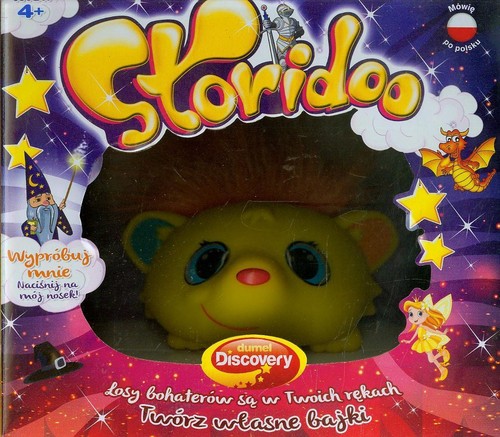 Storidoo to bajecznie wyglądający stworek, który opowiada bajki, a dziecko może zmieniać bieg ich wydarzeń tworząc nowe przygody bohaterów. Jeżeli chcesz stworzyć bajkę, Storidoo zaproponuje Ci różne tematy opowieści.Będziesz mógł tworzyć bajki o czarodziejach, wróżkach, potworach, piratach, a nawet duchach, które dodatkowo będziesz mógł zapisać w pamięci stworka. Zatem kiedy Storidoo zada Ci pytanie co chcesz robić, naciśnij niebieskie ucho aby posłuchać bajki, bądź pomarańczowe, aby stworzyć bajkę.Storidoo zaproponuje wiele możliwości kontynuacji bajki i tylko od Ciebie zależeć będzie jak potoczą się losy głównych bohaterów! Zatem jeżeli chcesz przejść dalej naciśnij pomarańczowe ucho, bądź jeżeli chcesz wybrać początek opowiadania, naciśnij niebieskie ucho. Zabawka może zapamiętać aż 20 stworzonych bajek, a Maluch będzie mógł je odsłuchać kiedy tylko zechce. W dzieciach drzemią ogromne pokłady energii i pomysłów,a wyobraźnia świadczy o dużym potencjale intelektualnym. Zabawa ze Storidoo pomaga rozwijać wyobraźnię i fantazję oraz wspiera kreatywność i twórcze myślenie dziecka.