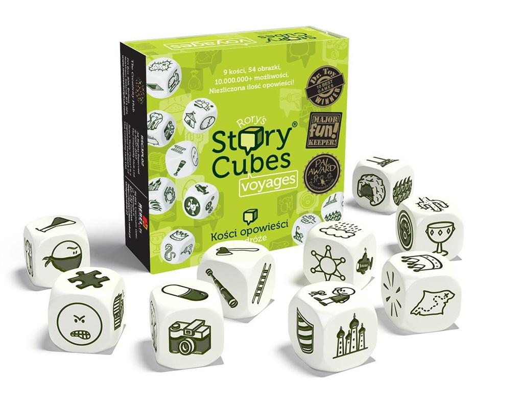 Story Cubes: Podróże są drugim rozszerzeniem kostek opowieści. Tym razem posiadają 54 unikalne ikonki opisujące większość najważniejszych słów związanych z podróżowaniem, które mogą zostać wykorzystane przy snuciu opowieści.