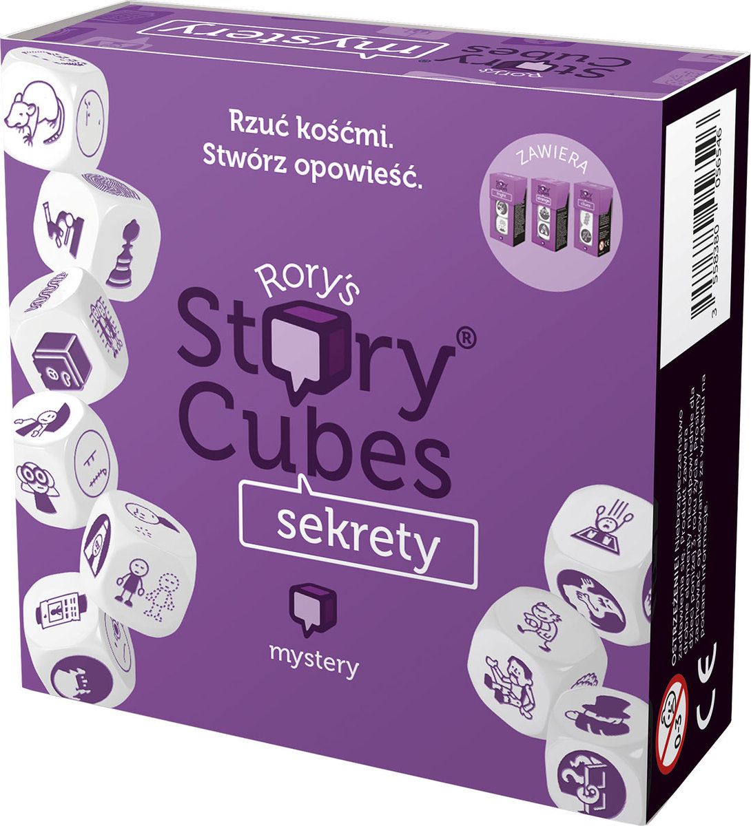 Oto prosta w założeniach i jednocześnie genialna gra, która dostarczy Wam masę radości, stanowiąc przy tym doskonały trening pomysłowości i wyobraźni. Story Cubes: Sekrety to dziewięć ładnie wykonanych, sześciennych kostek, z których każda zawiera na ściankach odmienny zestaw ilustracji.