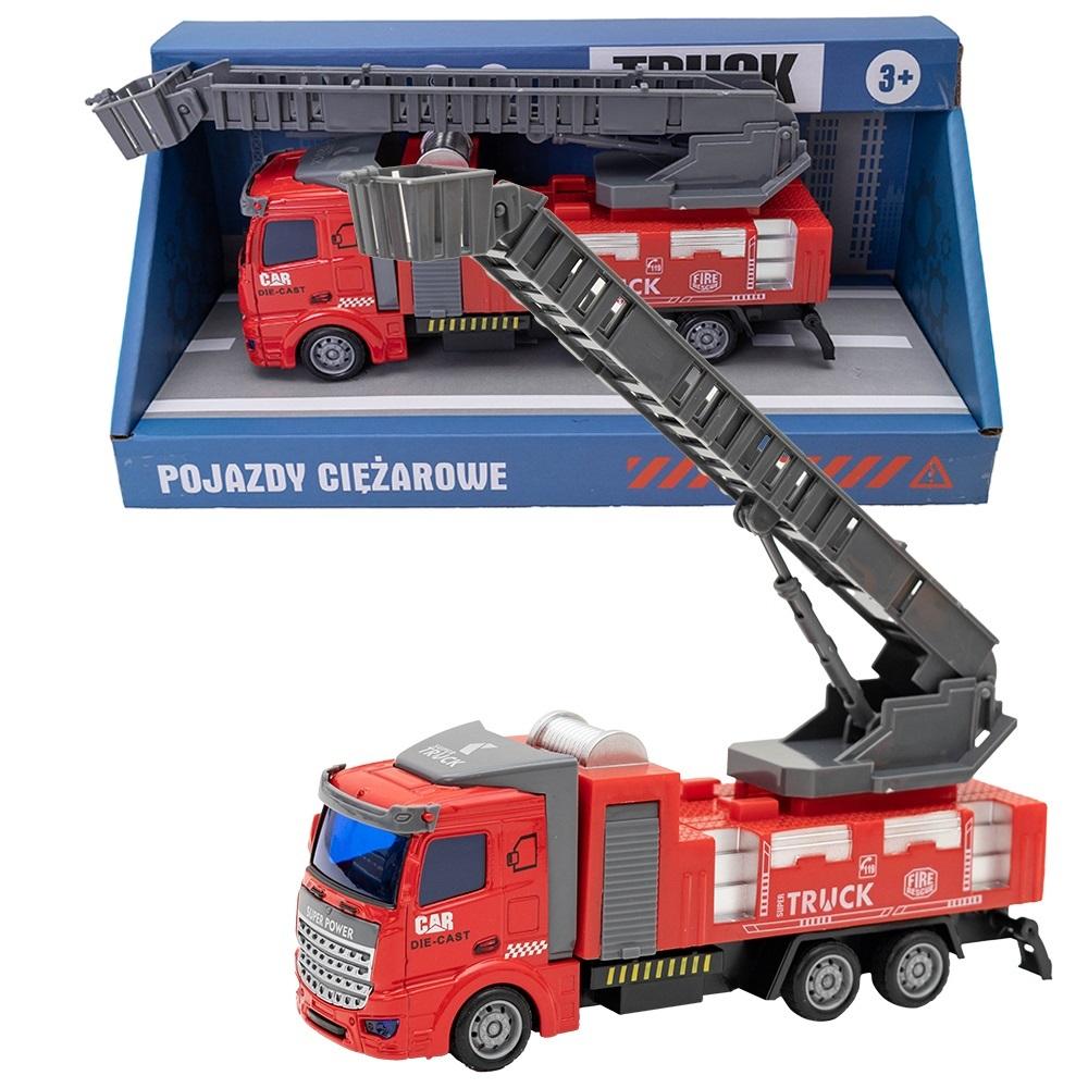 Straż pożarna z drabiną metalowa kabina ciężarówki, pojazd 19x5.5x10 cm Wymiary opakowania: 26.5x11.5x12.5 cm Wiek:+3