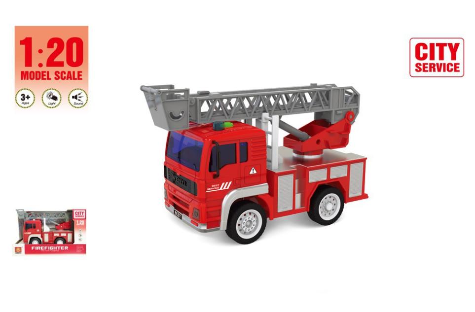 Klasyczny czerwony wóz strażacki z drabiną to spełnienie marzeń niejednego chłopca. Idealna do zabawy w domu. Dzięki napędowi typu frykcja, mknie po równej powierzchni do swojego punktu przeznaczenia. Samochód wykonany jest z dobrego plastiku z różnym elementami ruchomymi.