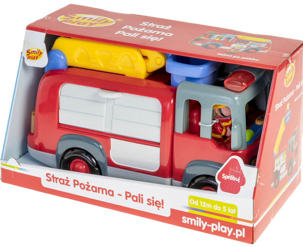 Auto Staż Pożarna Pali Się! jest bezpieczną zabawką już dla rocznego dziecka. Może się nią bawić także starsze dziecko (zabawka rekomendowana do 5-go roku życia). Auto straż mówi po polsku frazy związane tematycznie z zabawą w strażaków np.: „Pali się! Musimy ugasić pożar”. Ma wysuwaną, obrotową drabinę, za otwieranym panelem wbudowane są dodatkowe przyciski funkcyjne. Naciskanie przycisków wyzwala ciekawe, realistyczne dźwięki.