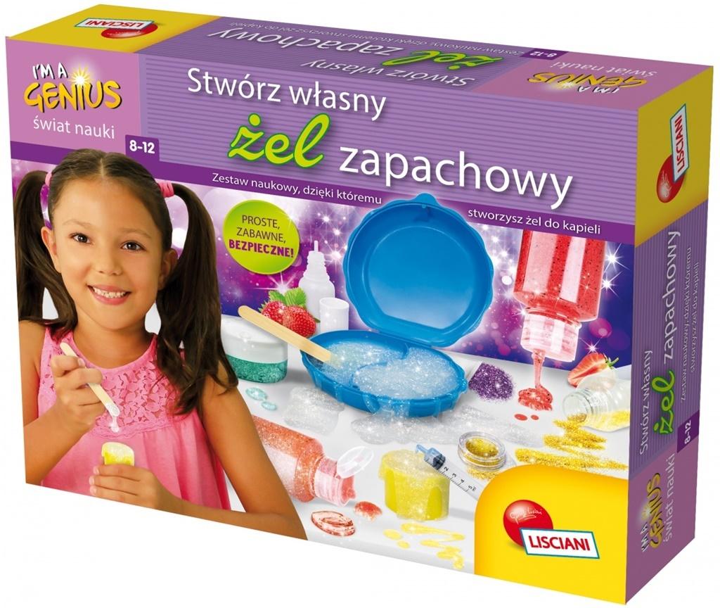 Zestaw naukowy, z którym stworzysz zapachowy żel, Używając laboratoryjnych narzędzi, wymieszaj składniki, dodaj brokat i ciesz się wyjątkowym żelem zapachowym.