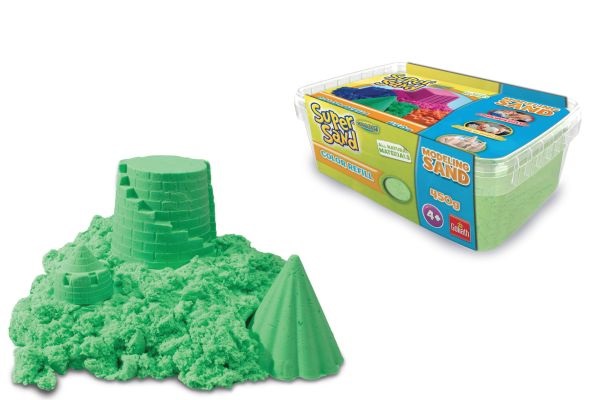 Super Sand Color - Zestaw z kolorowym piaskiem, pozwalający zacząć zabawę lub uzupełnić braki w już posiadanych zestawach. W zestawie znajduje się wyłącznie piasek Super Sand w jednym z czterech kolorów. Zamki na piasku Lato - słońce i plaża. Super Sand przenosi lato i zabawę piaskiem do domu. Super aksamitne w dotyku, suche a jednocześnie antybakteryjne i 100% naturalne, takie jest tworzywo Super Sand. Piasek, który można używać jeszcze raz i jeszcze raz i jeszcze Zrób babkę z piasku albo zamek z fosą. Dołączone narzędzia i piękne foremki pomogą stworzyć czego dusza zapragnie. Masa Super Sand składa się z naturalnych składników mineralnych. Jeżeli coś się rozsypie poza piaskownice, nie ma problemu ponieważ masa ma specjalną strukturę pomagającą w utrzymaniu czystości. Super Sand stymuluje kreatywność dzieci. Daj się ponieść swojej wyobraźni i ciesz się swoimi kreacjami z Super Sand! Teraz dzięki kolorowym piaskom twoje kreacje nabiorą barw! Dotknij aby poczuć różnice. Zestaw zawiera 450g piasku Super Sand.