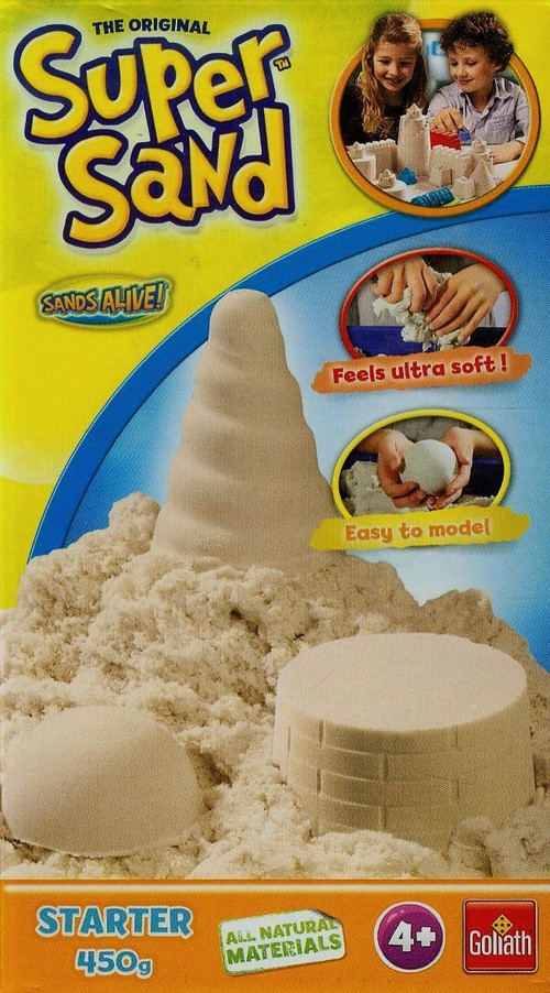 Super Sand Starter Zestaw startowy, pozwalający zacząć zabawę lub uzupełnić braki w już posiadanych zestawach. W zestawie znajduje się wyłącznie piasek Super Sand. Zamki na piasku Lato słońce i plaża. Super Sand przenosi lato i zabawę piaskiem do domu. Super aksamitne w dotyku, suche a jednocześnie antybakteryjne i 100% naturalne, takie jest tworzywo Super Sand. Piasek, który można używać jeszcze raz i jeszcze raz i jeszcze Zrób babkę z piasku albo zamek z fosą. Dołączone narzędzia i piękne foremki pomogą stworzyć czego dusza zapragnie. Masa Super Sand składa się z naturalnych składników mineralnych. Jeżeli coś się rozsypie poza piaskownice, nie ma problemu ponieważ masa ma specjalną strukturę pomagającą w utrzymaniu czystości. Super Sand stymuluje kreatywność dzieci. Daj się ponieść swojej wyobraźni i ciesz się swoimi kreacjami z Super Sand! Dotknij aby poczuć różnice. Zestaw zawiera: 450g piasku Super Sand