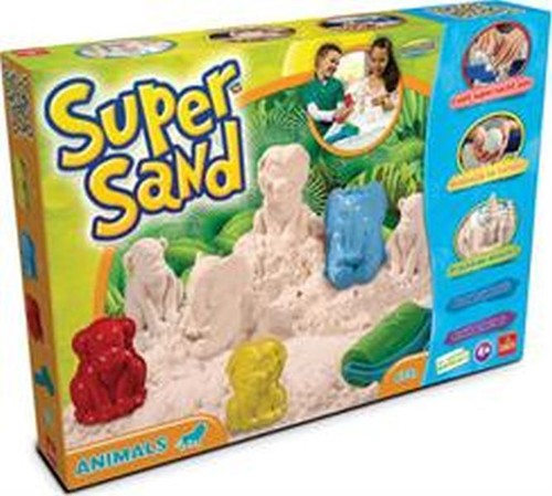 Odkryj przyjemność tworzenia trójwymiarowych kształtów zwierząt, korzystając z zawartych foremek. Lwy, małpy, słonie podążaj tropem swoich ulubionych zwierząt! Zamki na piasku Lato słońce i plaża. Super Sand przenosi lato i zabawę piaskiem do domu. Super aksamitne w dotyku, suche a jednocześnie antybakteryjne i 100% naturalne, takie jest tworzywo Super Sand. Piasek, który można używać jeszcze raz i jeszcze raz i jeszcze Zrób babkę z piasku albo zamek z fosą. Dołączone narzędzia i piękne foremki pomogą stworzyć czego dusza zapragnie. Masa Super Sand składa się z naturalnych składników mineralnych. Jeżeli coś się rozsypie poza piaskownice, nie ma problemu ponieważ masa ma specjalną strukturę pomagającą w utrzymaniu czystości. Super Sand stymuluje kreatywność dzieci. Daj się ponieść swojej wyobraźni i ciesz się swoimi kreacjami z Super Sand! Dotknij aby poczuć różnice. Zestaw zawiera: 675 g piasku Super Sand, pojemnik na piasek kuwetkę, 3 dwuczęściowe foremki 3D w kształcie zwierząt: Słoń, Małpka, Lew, rolkę odciskającą ślady zwierząt, oraz rolkę wygładzającą + rączkę.