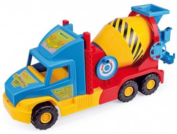 Betoniarka posiada wiele ruchomych elementów, które urozmaicą zabawę w piaskownicy, np. gruszkę obracaną za pomocą korbki.