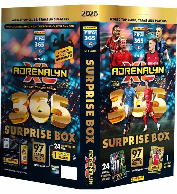 Panini FIFA 365 Adrenalyn XL™ w 2024 świętuje jubileusz dziesięciolecia! Kolekcja prezentuje najlepsze drużyny i gwiazdy największych światowych lig piłkarskich, a także nowe treści, kategorie kart i specjalne materiały, co sprawia, że zawsze każdego roku ta kolekcja jest ekscytująca! Począwszy od obiecujących graczy Rising Stars po uznanych piłkarzy Top Masters, Panini FIFA 365 Adrenalyn XL™ zawiera wszystko czego może oczekiwać fan piłki nożnej a nawet więcej!