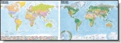 Solidna, dwustronnie laminowana mapa ścienna. Po jednej stronie znajduje się mapa polityczna świata, na odwrocie – mapa krajobrazowa.