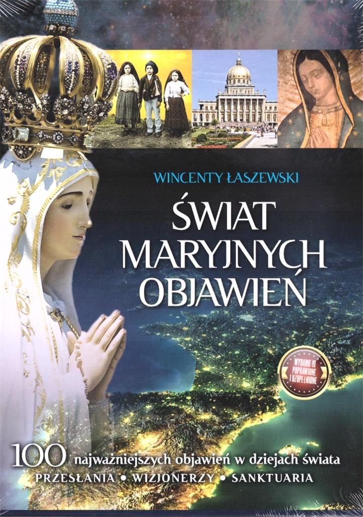 Jedyna taka książka na świecie. 100 najważniejszych objawień maryjnych w historii ludzkości zebranych w jednym tomie. Ponad tysiąc stron porywającego tekstu. Wincenty Łaszewski dotarł do historycznych relacji z wydarzeń i wypowiedzi wizjonerów. Ich wizje po stuleciach spełniają się właśnie na naszych oczach. Autor, znany polski mariolog, analizuje i przystępnie wyjaśnia przesłania, z którymi na Ziemię przychodziła Główna Bohaterka Książki. Ponad 2600 zdjęć i ilustracji. Współczesne, bajecznie kolorowe zdjęcia z sanktuariów i miejsc objawień, materiały historyczne, dokumenty i reprodukcje najwspanialszych dzieł sztuki sakralnej. Nasza książka pokazuje wszystko to, co inne próbują tylko opisać. Ponad 200 map ukazujących położenie miejsc kultu i objawień, pomagających zrozumieć tło historyczne wydarzeń. Dzięki zapierającej dech w piersiach szacie graficznej książka łączy cechy leksykonu, powieści sensacyjnej i efektownego albumu. W chwili, gdy czytasz te słowa, trwa kilkadziesiąt objawień – na całym świecie. Lawina „informacji z Nieba” narasta. Jeśli chcesz wiedzieć, przed czym ostrzega Maryja i na co powinniśmy się przygotować – ta książka jest właśnie dla Ciebie. Jakość na pokolenia. Książka idealna na niepowtarzalny prezent. Luksusowe wydanie w eleganckim, kolekcjonerskim, lakierowanym pudełku zabezpieczającym książkę przed uszkodzeniem.