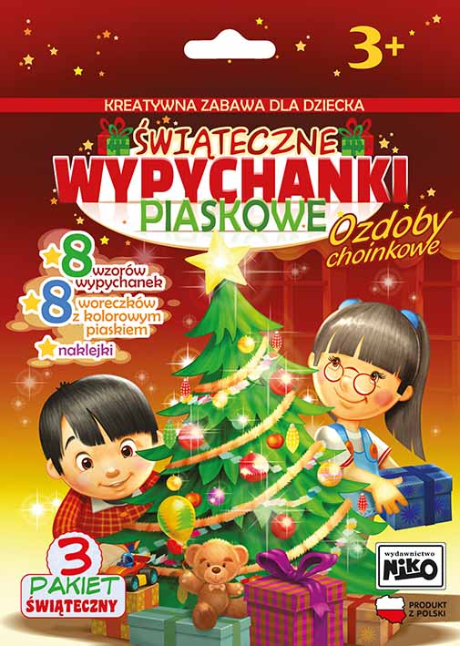 Każdy może stworzyć swoją niepowtarzalną dekorację świąteczną, którą ozdobi choinkę i dom. W opakowaniu znajdują się gotowe kartonowe elementy do wyjęcia, patyczek, woreczki z piaskiem i naklejki.