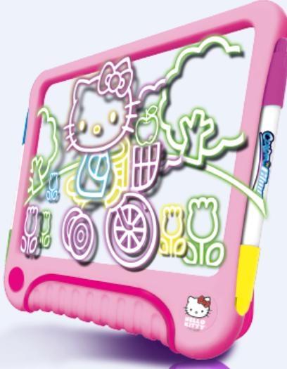 Jeżeli Twoje dziecko wykazuje szczególne zamiłowanie do rysowania to świecąca ramka jest dla niego idealnym rozwiązaniem. Wystarczy, że umieścisz szablon z motywem Hello Kitty w ramce, pokolorujesz go specjalnymi flamastrami, a potem wyjmiesz go z ramki. Następnie załóż okulary 3D, włącz podświetlanie ramki i oglądaj wykonane przez siebie trójwymiarowe obrazy!