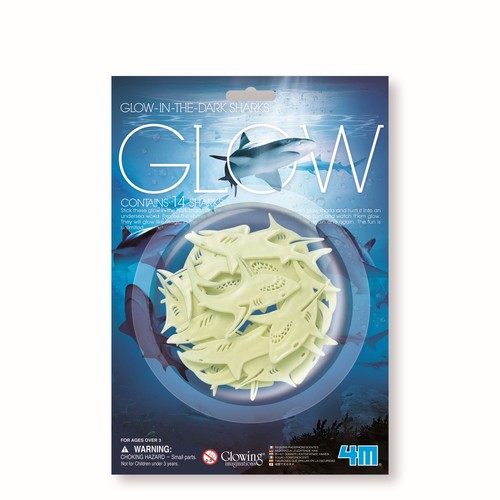 Zestaw, w którym znajdziesz fluorescencyjne rekiny, które pozwolą stworzyć świecące nocą scenerie w Twojej sypialni.