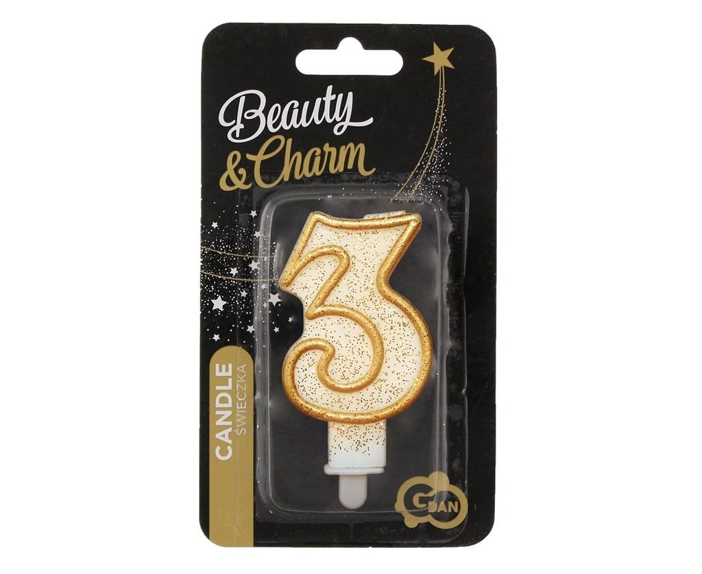 Świeczka CYFRA 3 urodziny, złoty kontur