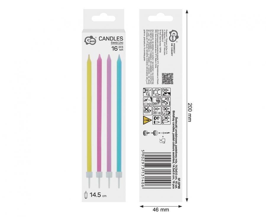 ŚWIECZKI URODZINOWE, PASTELOWE - 16 SZT.