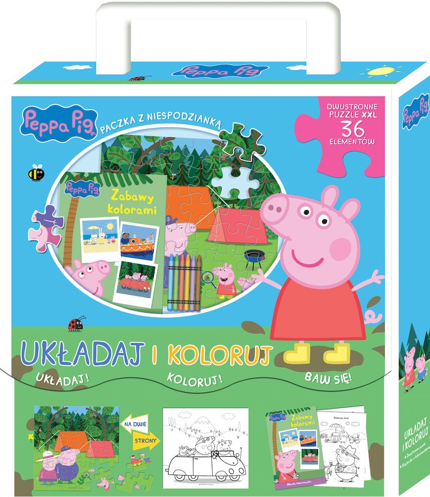 Oto pudełko pełne zabawy! Wewnątrz dziecko znajdzie książeczkę z malowankami oraz dwustronnymi puzzlami. Ułóż obrazek z bohaterami, a potem odwróć układankę i pokoloruj scenkę według własnego pomysłu.